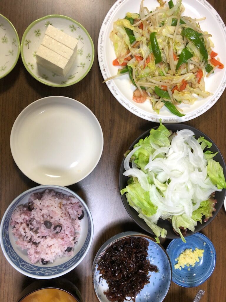 昨日は26度と暑かったので、冷奴と無農薬レタスのサラダ、金目ダイの干物でした。