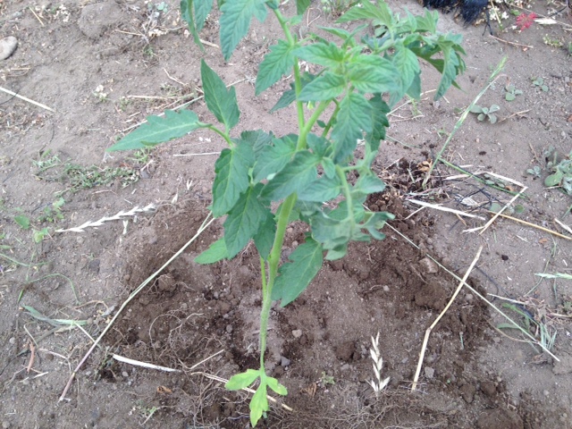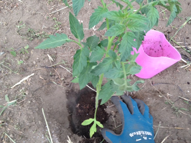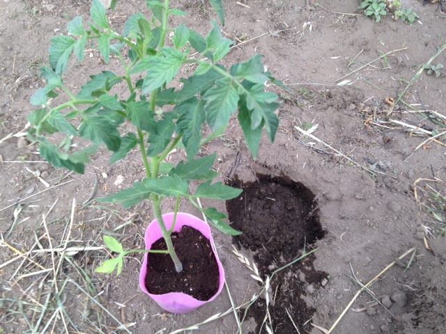 ◆元気に育ったトマトの苗◆①やさしくポットから苗を取り出し、定植用の穴にセットします。