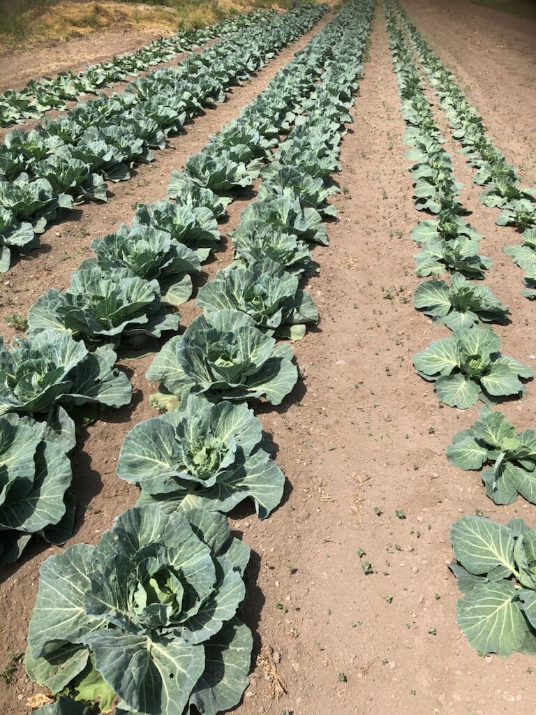 3月に定植したキャベツが結球してきました。