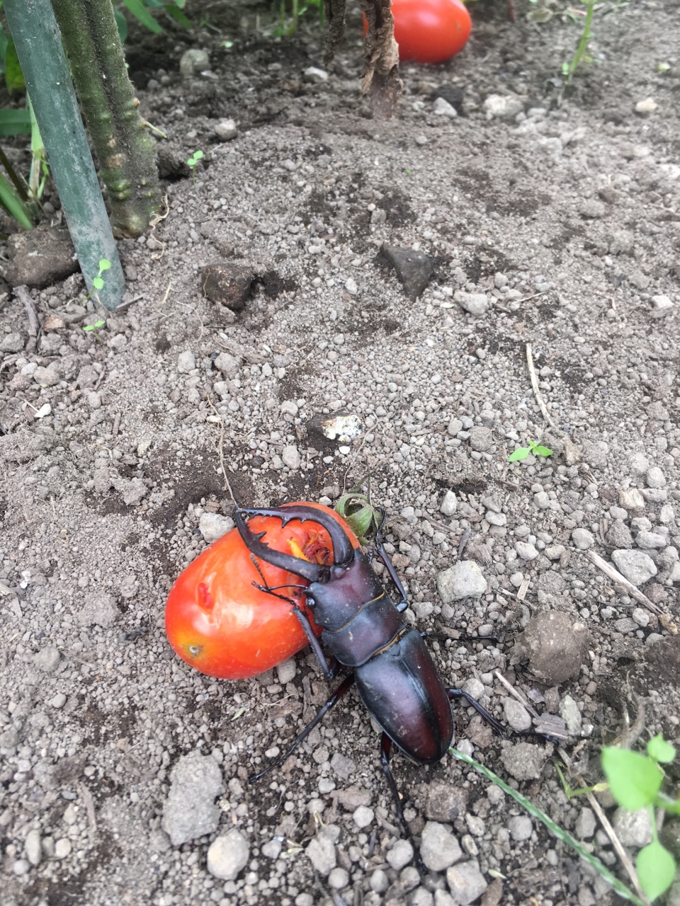 【梅雨明け間近の一コマ】トマトとクワガタ